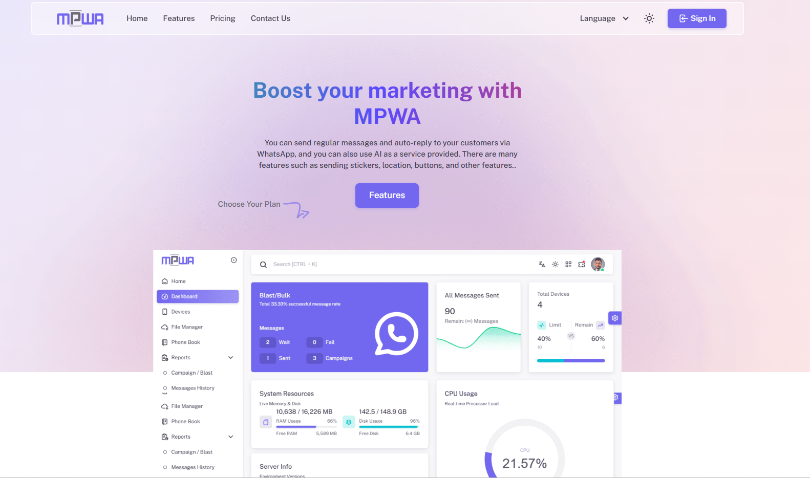 MPWA is ideal for developers and system integrators building WhatsApp-enabled applications, chatbots, notification systems, or customer communication platforms.